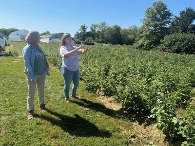 NRCS District Conservationist Morgan Devine speaks with Rebecca at Moonshot Farm. Photo by Jacob Bailey, NRCS.